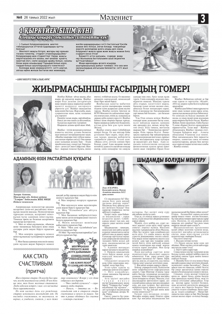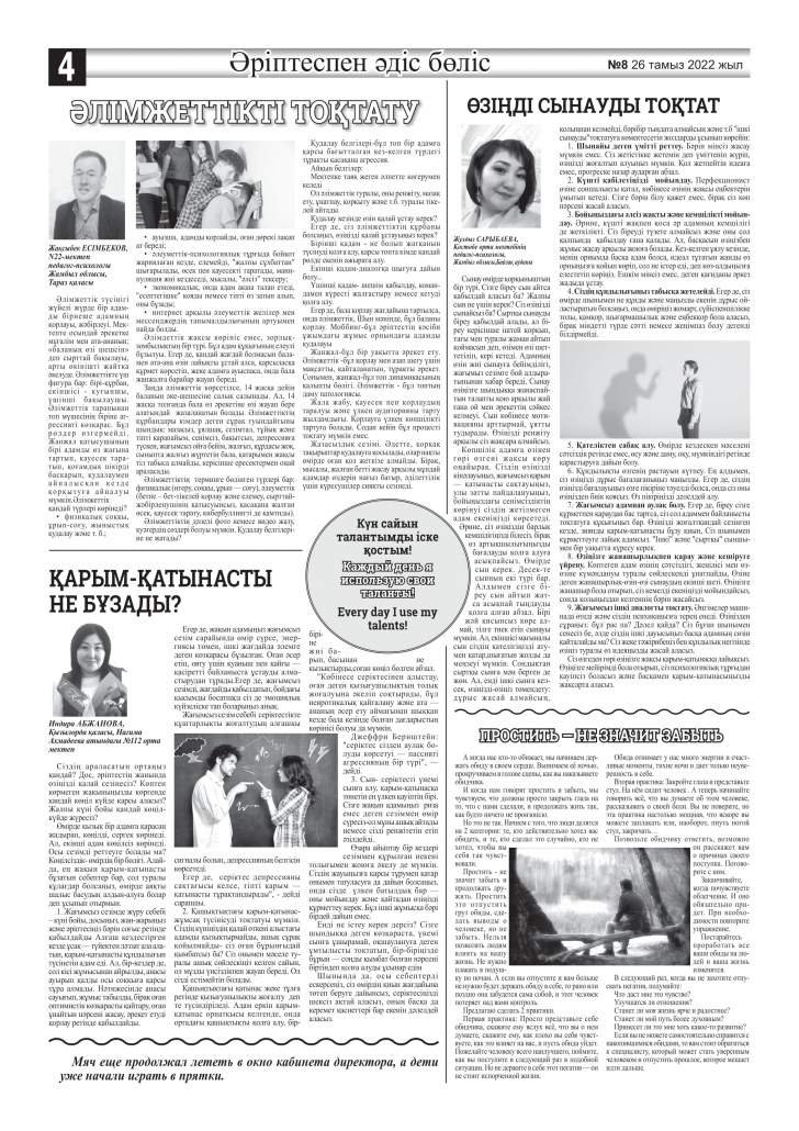 Бас редактор: Бизақова Фатима Әбдіқызы
